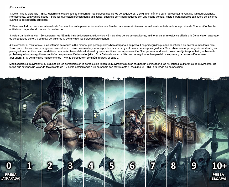 Aquí encontraréis un simple pero útil marcador para llevar el control de vuestras persecuciones con un resumen de las reglas aplicabes.