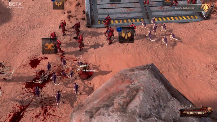 El tutorial para los que vienen de Sanctus Reach puede parecer que sobra, pero ayuda a entender desde el primer momento la nueva incorporación del «Momentum», algo así como una especia de «Inspiración/Impulso» que las unidades pueden ir acumulando (o perdiendo) y que podrían permitir que nuestras unidades realicen acciones adicionales.