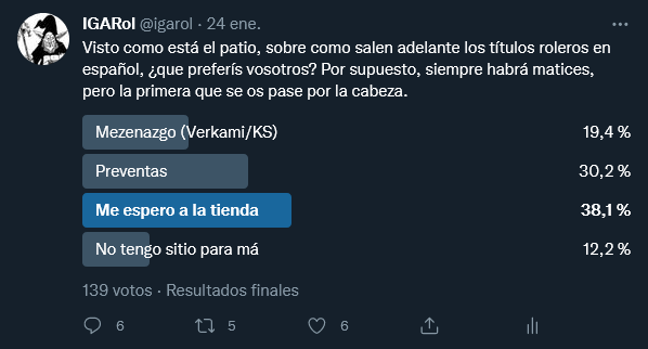 Recientemente realizamos una encuesta en Twitter cuyo destino era ver cuál era la forma que la gente prefiere para adquirir sus títulos roleros. Financiarlos antes de que salgan adelante con un mecenazgo, esperar a que ya esté listo y acceder en una preventa o esperar directamente a adquirirlos en las tiendas. También hay sitio para quienes ya no tienen espacio para más…
