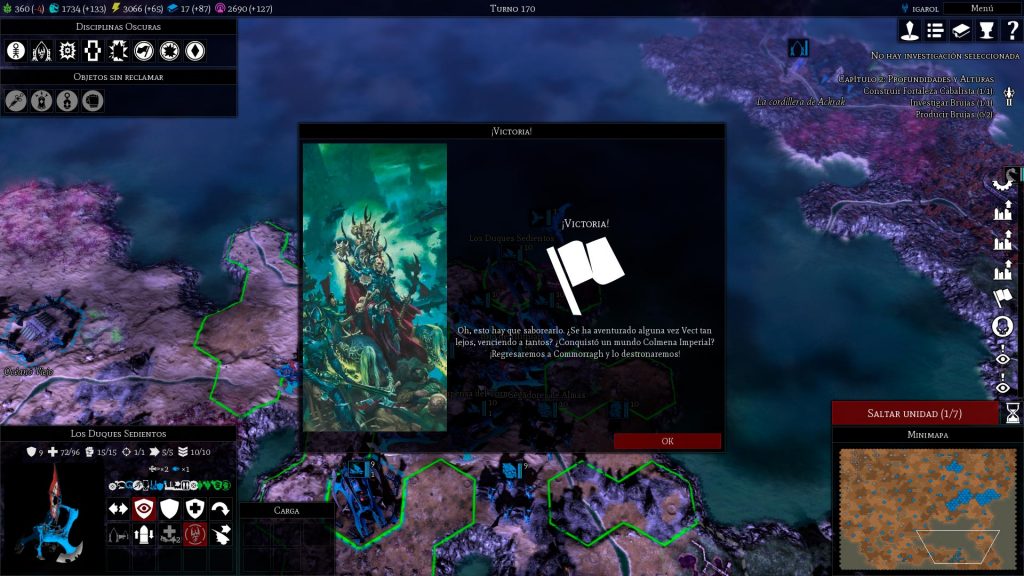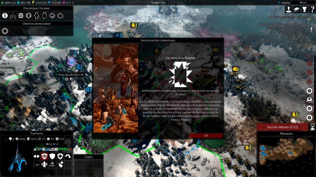 La influencia es un recurso clave para esta facción y una de las mecánicas potencia este hecho. Así pues las almas que recolectan los Drukhari cuando destruyen unidades enemigas, permiten que obtengas una recompensa en forma de influencia, que sin duda te vendrá bien para obtener efectos a través de las Disciplinas Oscuras o para activar algunas habilidades especiales de las unidades (como la reparación de tus vehículos). También hay que saber que la lealtad de sus ciudades es más baja y que al conseguir influencia se logra aumentar la lealtad.