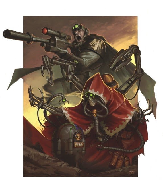 Cuando se me ofreció la oportunidad de crear la línea de juego de Ira y Gloria, no dude en aprovechar la oportunidad. Una de las cosas que más me emocionaba era la perspectiva que podría aproximarme a Ira y Gloria de una forma completamente nueva. Esta idea empezó con el concepto de un único y exhaustivo libro básico que proporcionaría a los jugadores las reglas básicas que necesitarían para jugar una amplia variedad de experiencias en el universo de Warhammer 40.000. A partir de ahí, quería diversificarme empleando un modelo específico y orientado para la línea de juego que llamé «campañas.”