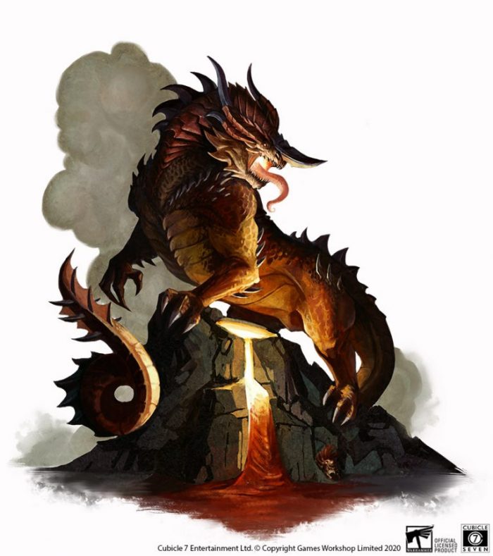 ‘Mientras descendéis en las profundidades de la cripta Duardin, vuestro oído no puede evitar captar un sonido tenue y amortiguado de pisadas de algo gigantesco en la oscuridad. El Magmadroth conocido en otro tiempo como Perdición Clepsiriana acecha en estos pasillos. La que fuera una noble montura para un Fyreslayer Duardin, cayó durante una batalla hace mucho tiempo y fue sepultada en las criptas junto a los héroes de los Duardin. Pero con el Necroterremoto, la bestia se ha vuelto a levantar, retorcida y confundida. Donde antes había un horno inextinguible que ardía en el corazón de la bestia, ahora sólo existe un vacío de frío mortal, dispuesto para congelar a cualquiera que intente acabar con la criatura. El hielo cubre toda la superficie y vuestro aliento se congela en el aire, mientas una mirada gélida observa vuestro descenso’.