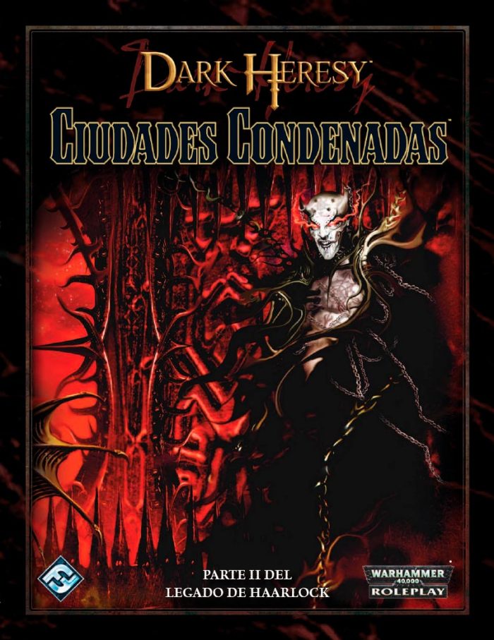 Ciudades condenadas forma parte de la campaña del Legado de Haarlock para el juego de rol de Dark Heresy. Se trata de una aventura en la que intervienen diferentes estilos de juego, como el horror de supervivencia, intrigas, investigación y acción desesperada. Ciudades condenadas puede jugarse independientemente, pero está previsto que se trate de la segunda parte de la campaña del Legado de Haarlock, de modo que así la experiencia para el DJ y los jugadores sea mucho más profunda.