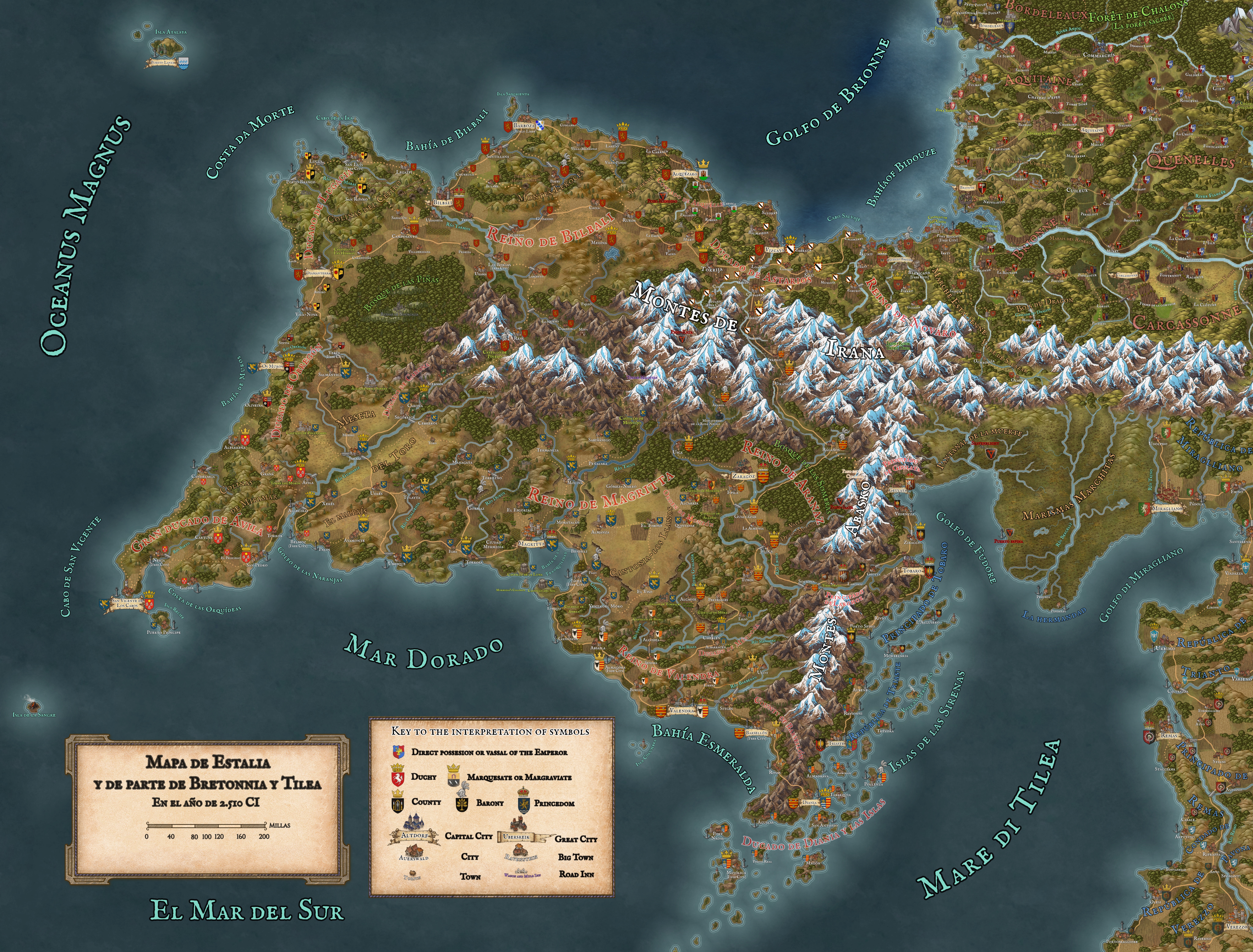 A veces las aventuras de Warhammer Rol se salen de las fronteras del Imperio. Y si uno viaja más allá de Bretonia puede acabar por llegar a tierras Estalianas donde puede encontrarse nuevos rincones para explorar el Viejo Mundo, llenos de su propia personalidad. Una nación dominada por dos grandes ciudades estado (Bilbali y Magritta), cuya rivalidad marca el día a día casi tanto como la rivalidad de siglos con los vecinos tileanos.