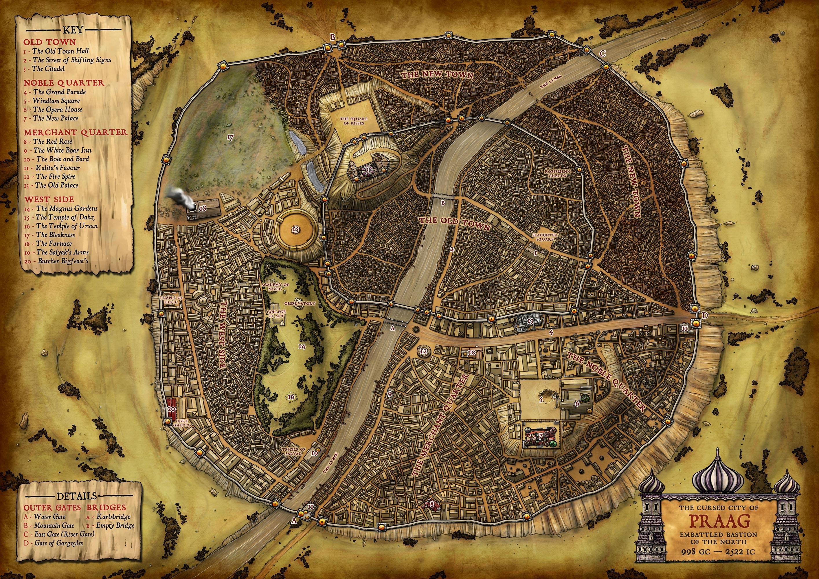 Su historia le precede, no en vano es conocida como la ciudad maldita de Praag. Si quieres conocer más detalles sobre esta ciudad descarga su mapa antes de aventurarte en ella durante tu partida de Warhammer Rol.