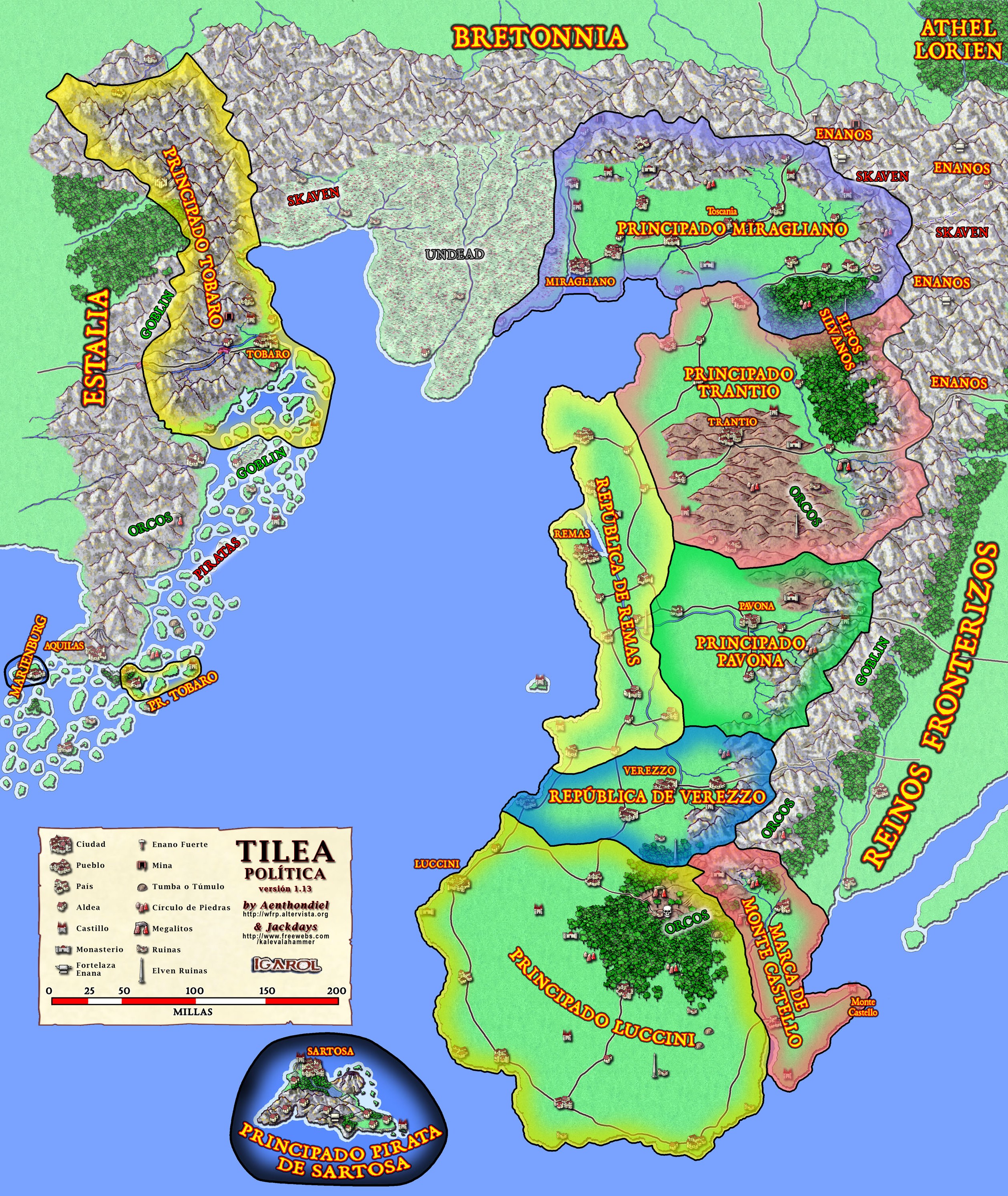 Si vuestras aventuras en el Viejo Mundo os acaban llevando a esta parte, os vendrá muy bien tener a vuestra disposición un mapa político a color de Tilea para tener situados todos los lugares importantes.